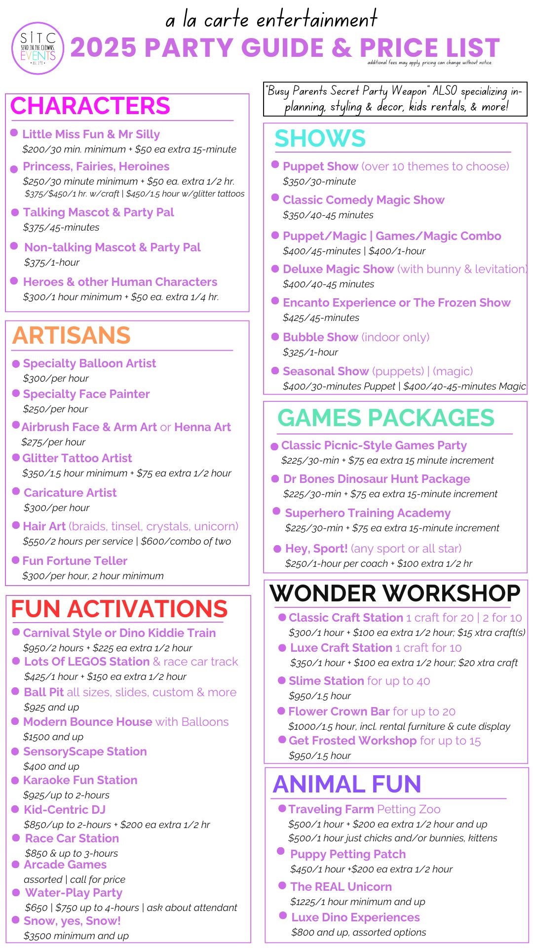 All pricing subject to change without notice.
